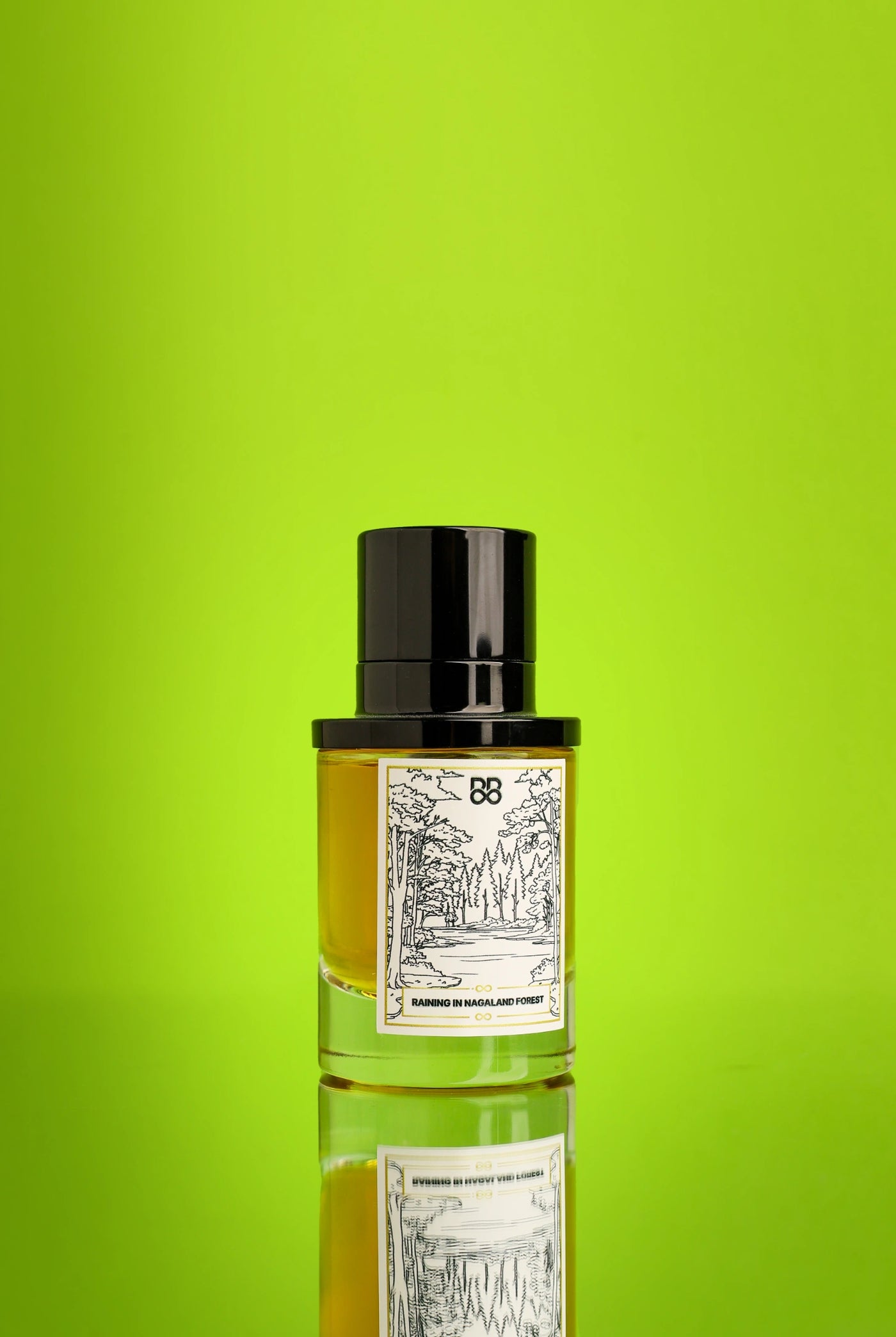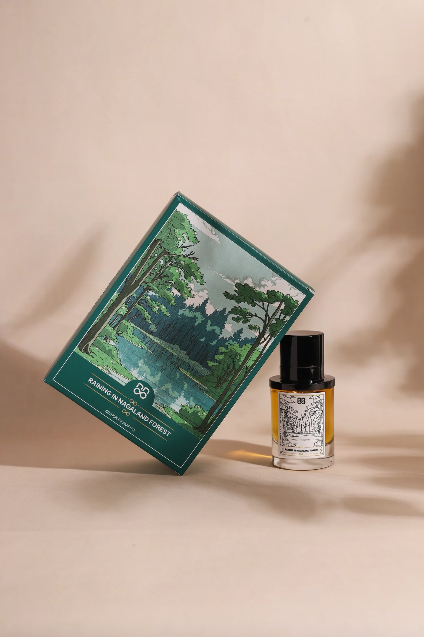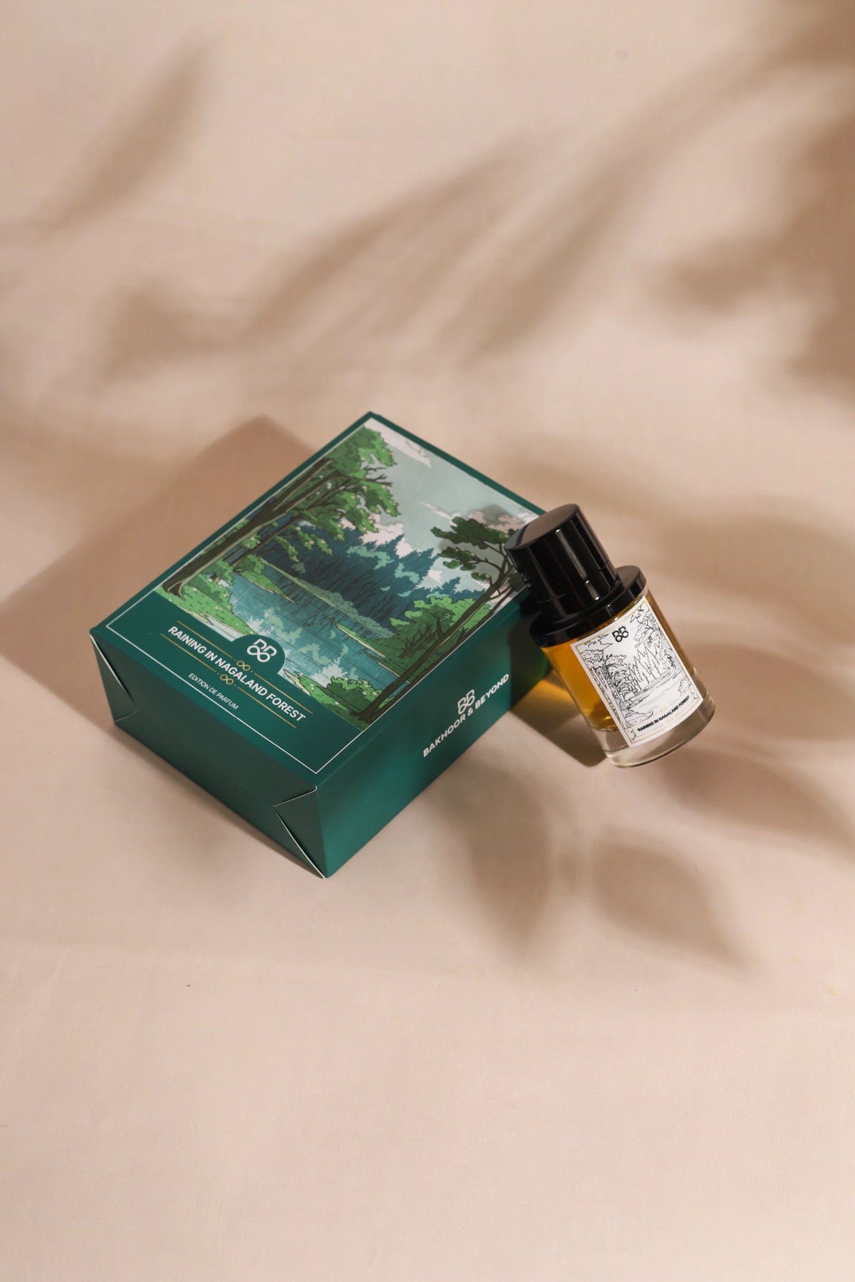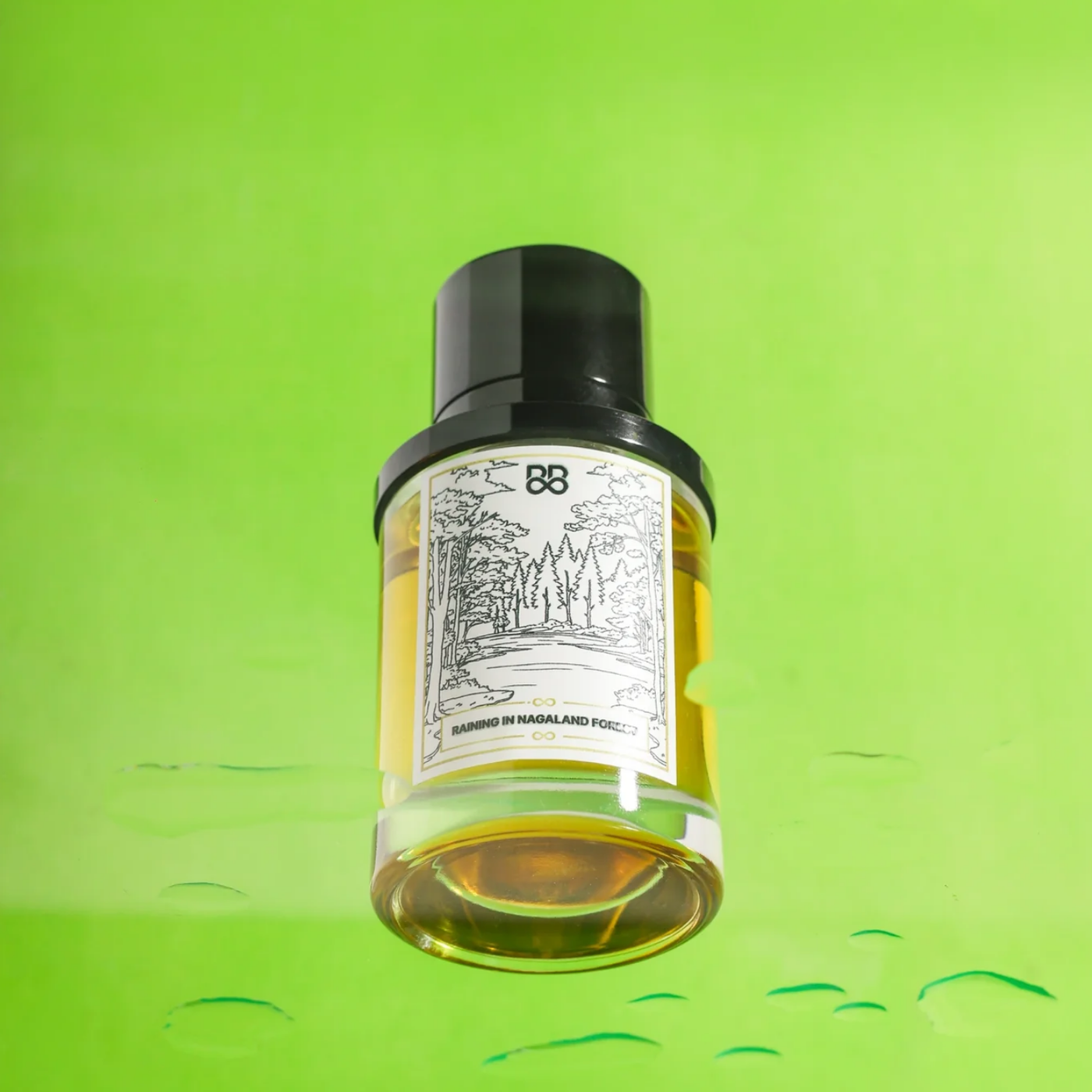 The air after rain damp moss, patchouli, and the green breath of an untouched forest. Raining in Nagaland Forest is my ode to the earth itself masculine, deep, and alive. A modern fougère that echoes the wild rhythm of the rain.